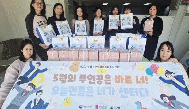 [´º½ºÅë °û¸íÈÆ ±âÀÚ]ºÎ»ê¼±¸Ã»¼Ò³â»ó´ãº¹Áö¼¾ÅÍ´Â 5¿ù û¼Ò³âÀÇ ´ÞÀ» ¸Â¾Æ û¼Ò³âÀÇ °Ç°ÇÑ ¼ºÀåÀ» ÀÀ¿øÇϱâ À§ÇØ ¡®5¿ùÀÇ ÁÖÀΰøÀº ¹Ù·Î ³Ê! ¿À´Ã¸¸ÅÀº ³×°¡ ¼¾ÅÍ´Ù¡¯ »ç¾÷À» ¿î¿µÇß´Ù. À̹ø Çà»ç´Â °ü³» °íÀ§±â û¼Ò³âµéÀÇ Á¤¼Àû ¼Ò¿Ü°¨À» ¿ÏÈÇϰí, Çо÷°ú ¶Ç·¡ °ü°è µî¿¡¼ °Þ´Â ½ºÆ®·¹½º¸¦ °Ç°ÇÏ°Ô ÇØ¼ÒÇÒ ¼ö ÀÖµµ·Ï µ½±â À§ÇØ ¸¶·ÃµÆÀ¸¸ç, ÀÀ¿ø ¸Þ½ÃÁö¿Í ÇÔ²² ¼ÒÁ¤ÀÇ ¼±¹°À» Àü´ÞÇß´Ù.