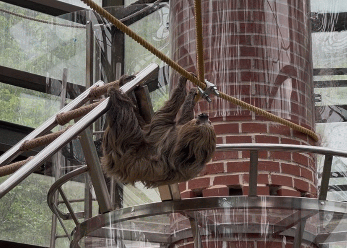 ³ª¹«´Ãº¸´Â ´ëºÎºÐ ³ª¹µ°¡Áö µî¿¡ ¹ßÅéÀ» °É°í °Å²Ù·Î ¸Å´Þ·Á »ýȰÇÑ´Ù. ÀÌ¿¡ ¿ìÄ¡µ¿¹°¿øÀº Áö»ó 5m ³ôÀÌ¿¡ ³ª¹«´Ãº¸°¡ ÀÚÀ¯·Ó°Ô ¸Å´Þ¸®±â À§ÇÑ ÁÙÀ» ¼³Ä¡, °ü¶÷°´ ¸Ó¸® À§·Î ³ª¹«´Ãº¸°¡ À̵¿ÇÒ ¼ö ÀÖµµ·Ï »çÀ° °ø°£À» Á¶¼ºÇß´Ù.