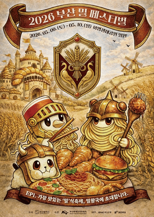 ¿ÃÇØ·Î 3ȸ¸¦ ¸ÂÀÌÇÏ´Â '2026 ºÎ»ê ¹Ð Æä½ºÆ¼¹ú'Àº Çѱ¹ÀüÀï ÀÌÈÄ ÁÖ¿ä ¹Ð Áý»êÁö¿´´ø ºÎ»êÀÇ ¿ª»çÀû ¹è°æÀ» Åä´ë·Î, Àηù ¿ª»ç»ó Áß¿ä ½Ä·®ÀÌÀÚ ¼¼°è 3´ë ÀÛ¹°ÀÎ ¹Ð·Î ¸¸µç À½½ÄÀ» ´Ù¾çÇÏ°í ±í°Ô °æÇèÇÒ ¼ö ÀÖµµ·Ï ±âȹÇß´Ù.