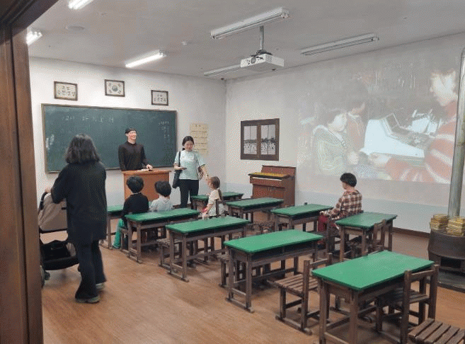 Ãß¾ï°øÀÛ¼Ò ³»ºÎ Àü½Ã½Ç¿¡´Â ¿¾ ÇÔÆò±¹¹ÎÇб³ ±³½ÇÀ» ÀçÇöÇØ ±³»ç¿Í ÇлýµéÀÌ ¼ö¾÷À» ÁøÇàÇÏ´Â ¸ð½ÀÀ» ¿¬ÃâÇß´Ù.
